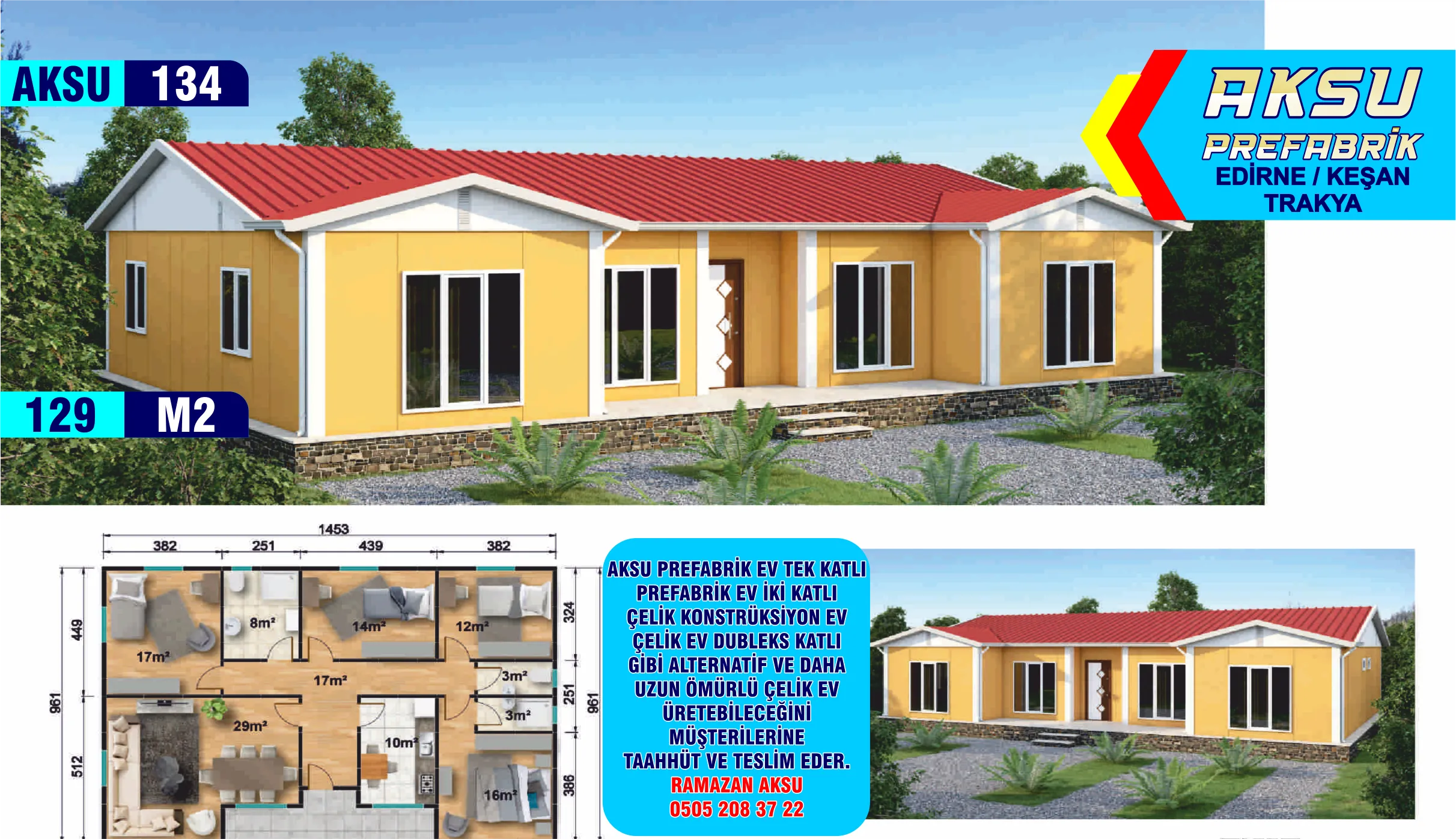 Tek Katlı Ekonomik Prefabrik Evler Hızlı, Güvenli, Kalıcı, Size Özel Tasarımlar. AKSU Prefabrik & Hafif Çelik olarak, ekonomik prefabrik ev çözümleri ile konforu ve kaliteyi herkesin erişebileceği hale getiriyoruz. Tek katlı ekonomik prefabrik evlerimiz, modern yaşamın ihtiyaçlarını karşılayan, dayanıklı ve uygun maliyetli yapılar sunar. Neden Ekonomik Prefabrik Evler?