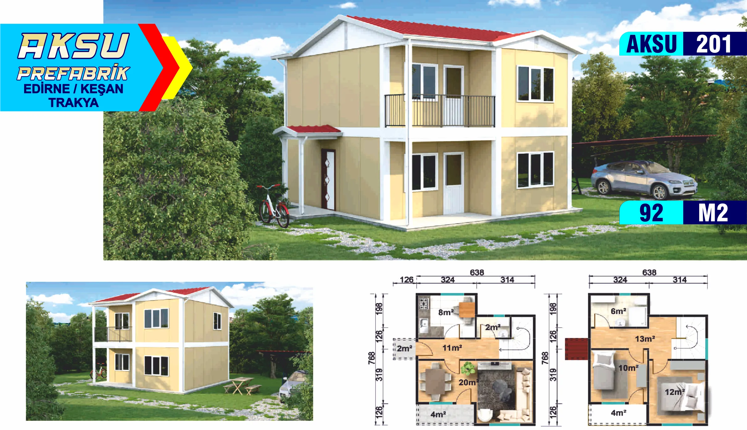 AKSU Prefabrik & Hafif Çelik olarak, Yılların Tecrübesi ile lüksü ve konforu bir araya getiriyoruz. Lüks dubleks prefabrik evlerimiz, geniş yaşam alanları, modern tasarım çizgileri ve üst düzey malzeme kalitesiyle göz kamaştırıyor. İki katlı bu evler, hem estetik hem de fonksiyonellik açısından en yüksek standartları karşılamak üzere tasarlandı.