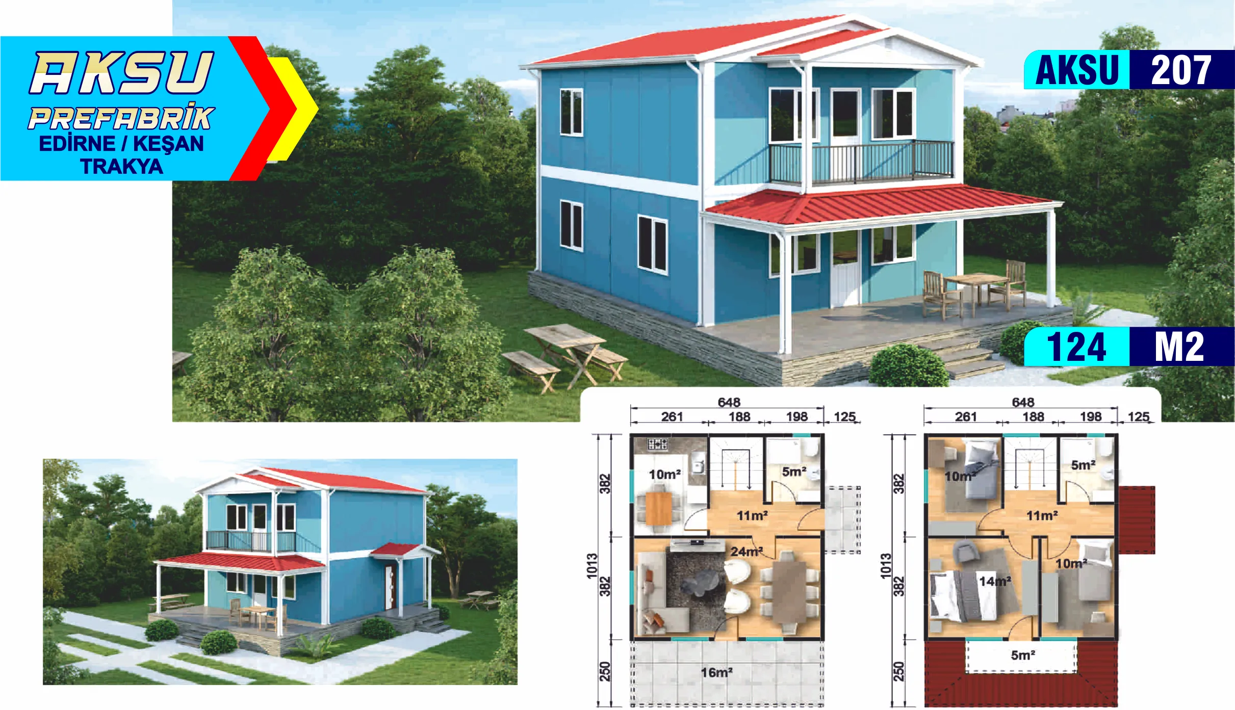 AKSU Prefabrik & Hafif Çelik olarak, Yılların Tecrübesi ile lüksü ve konforu bir araya getiriyoruz. Lüks dubleks prefabrik evlerimiz, geniş yaşam alanları, modern tasarım çizgileri ve üst düzey malzeme kalitesiyle göz kamaştırıyor. İki katlı bu evler, hem estetik hem de fonksiyonellik açısından en yüksek standartları karşılamak üzere tasarlandı.
