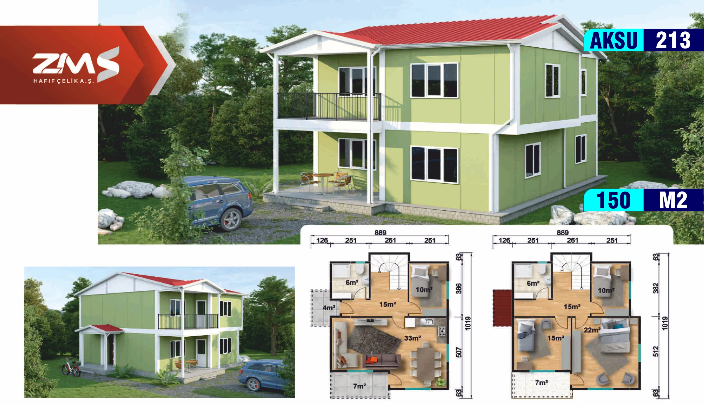 AKSU Prefabrik & Hafif Çelik olarak, Yılların Tecrübesi ile lüksü ve konforu bir araya getiriyoruz. Lüks dubleks prefabrik evlerimiz, geniş yaşam alanları, modern tasarım çizgileri ve üst düzey malzeme kalitesiyle göz kamaştırıyor. İki katlı bu evler, hem estetik hem de fonksiyonellik açısından en yüksek standartları karşılamak üzere tasarlandı.