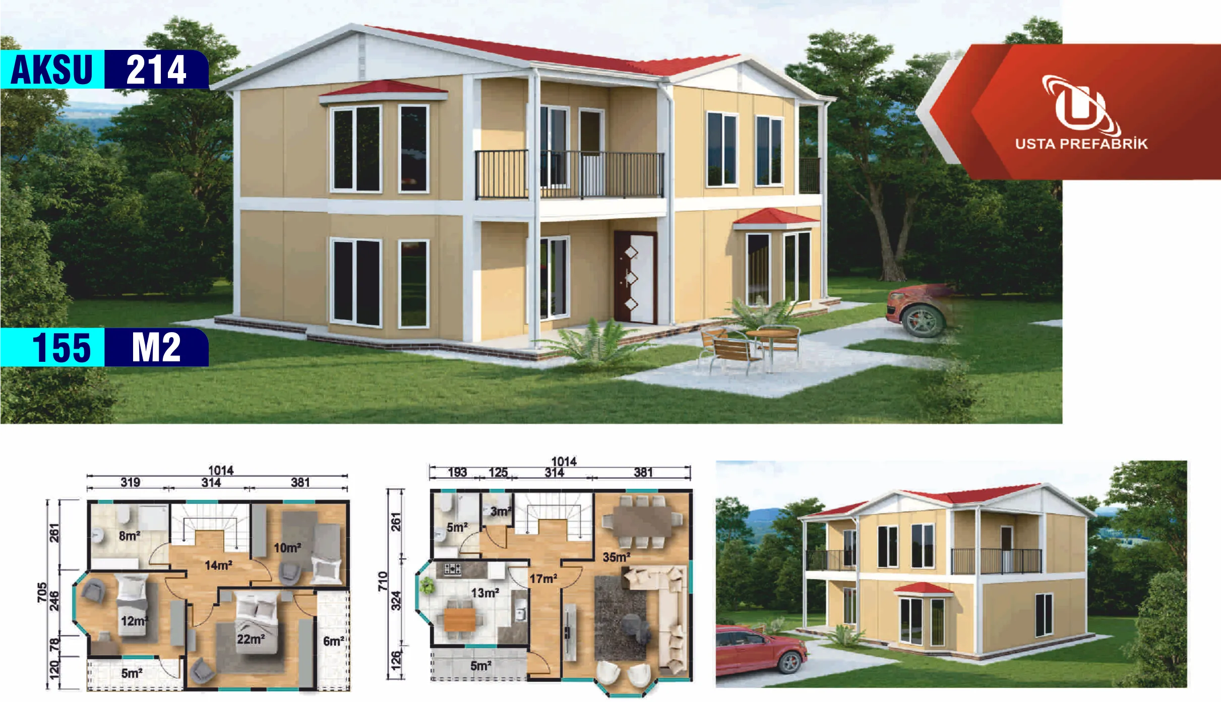 AKSU Prefabrik & Hafif Çelik olarak, Yılların Tecrübesi ile lüksü ve konforu bir araya getiriyoruz. Lüks dubleks prefabrik evlerimiz, geniş yaşam alanları, modern tasarım çizgileri ve üst düzey malzeme kalitesiyle göz kamaştırıyor. İki katlı bu evler, hem estetik hem de fonksiyonellik açısından en yüksek standartları karşılamak üzere tasarlandı.